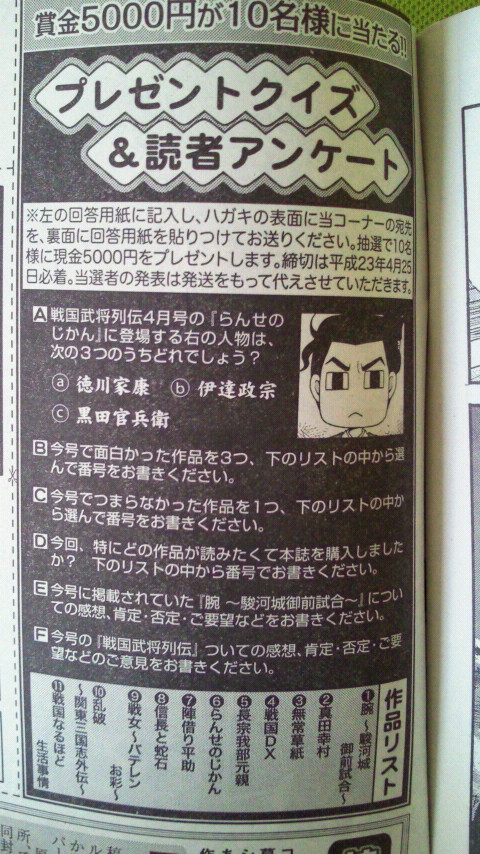 ちなみに「ひねもすらんせ」改題「戦国おもしろ草紙~乱世のきずな~」の単行本は、3月13日発売の予定です。