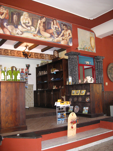ポンペイを意識した感じの壁画ですが