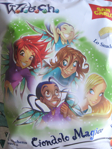 スナックのパッケージについてた、外国っぽい魔女っ子(イタリアのものかは不明だけども)。