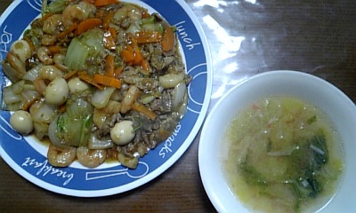 八宝菜とカニカマスープ!(^q^)b